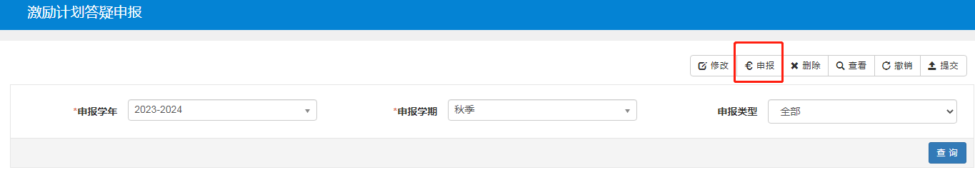 2. 进入教务系统后,选择“申请”--“激励计划答疑申报”,如下图所示