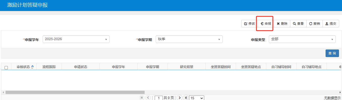 2. 进入教务系统后,选择“申请”--“激励计划答疑申报”,如下图所示