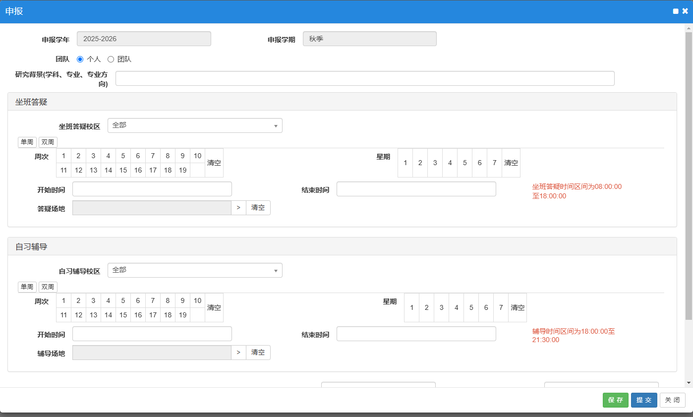 5. 全部填完后可点击“保存”或“提交(提交后不可修改)”