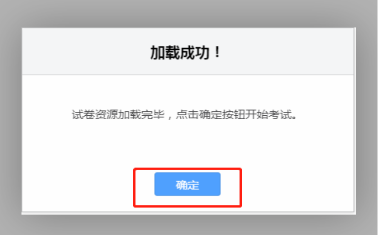第十步:点击【开始考试】,系统会自动加载考试资源,试卷资源加载完成后点击【确定】,正式进入考试页面,考试时长倒计时开启。