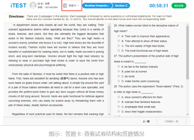 *提交试卷前,建议点击页面上方【答题卡】查看是否所有题目已完成,绿色代表已完成,灰色代表未完成。