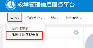 进入教务系统后,选择“申请”--“激励计划答疑申报”,如下图所示