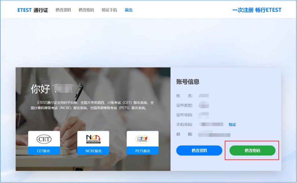 如需修改账户密码,需要登录账户注册系统(https://passport.neea.edu.cn)后修改密码。