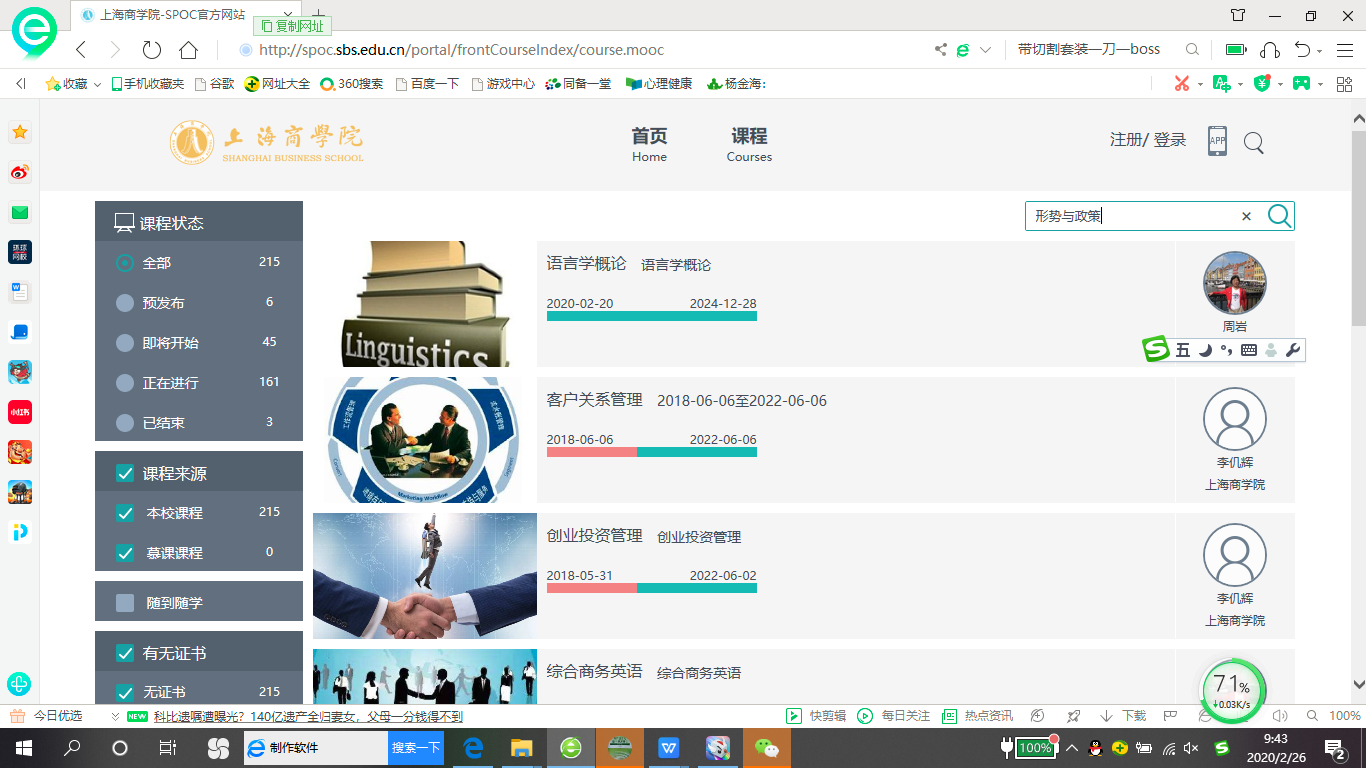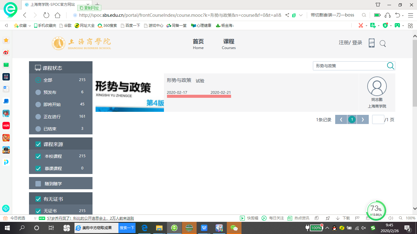 三、登录学校SPOC系统,搜索“形势与政策”课程,根据课程通告要求进行学习和完成作业。