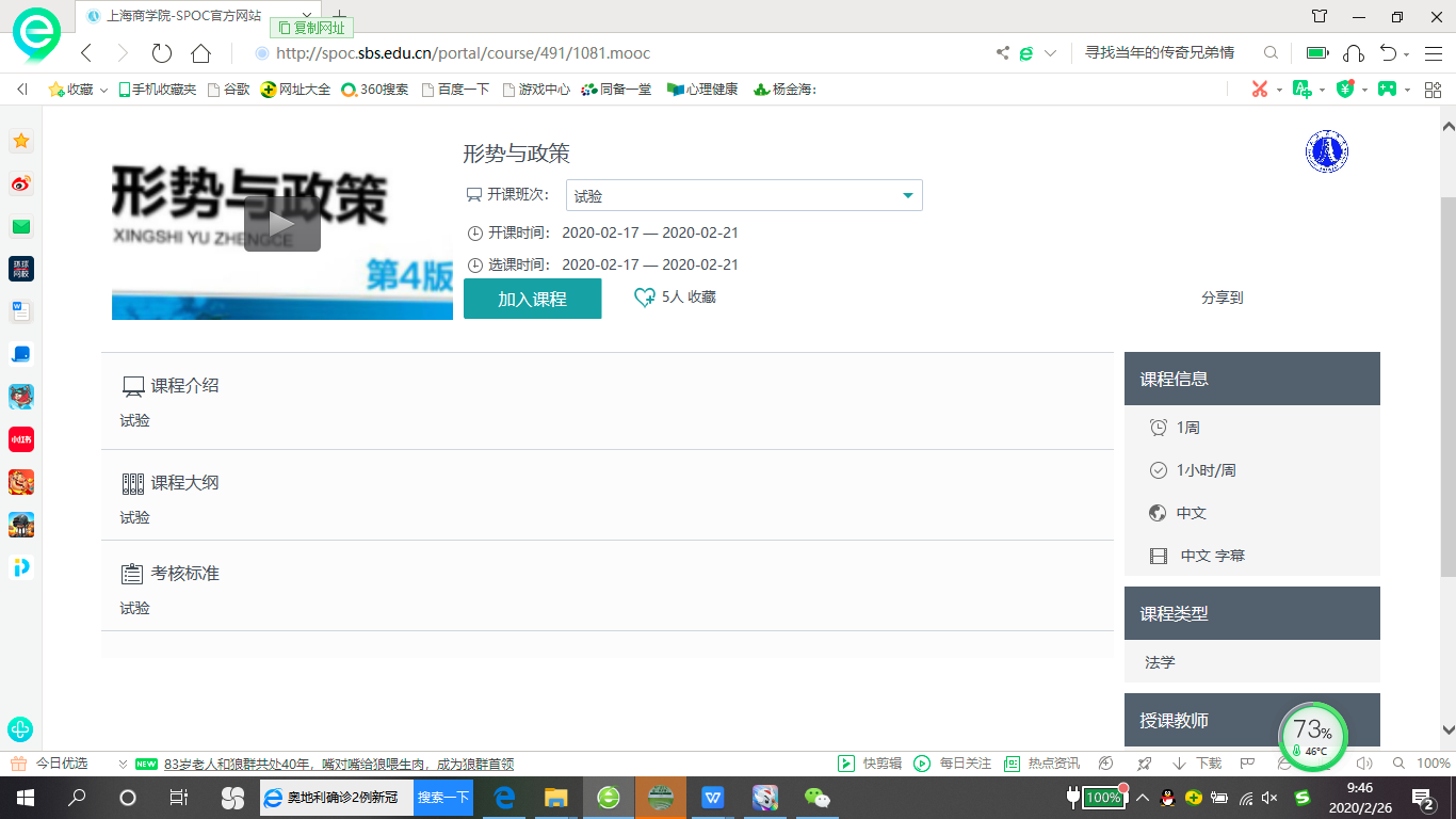 一、学生自即日起登陆教务系统查看《形势与政策》课程具体课表安排。