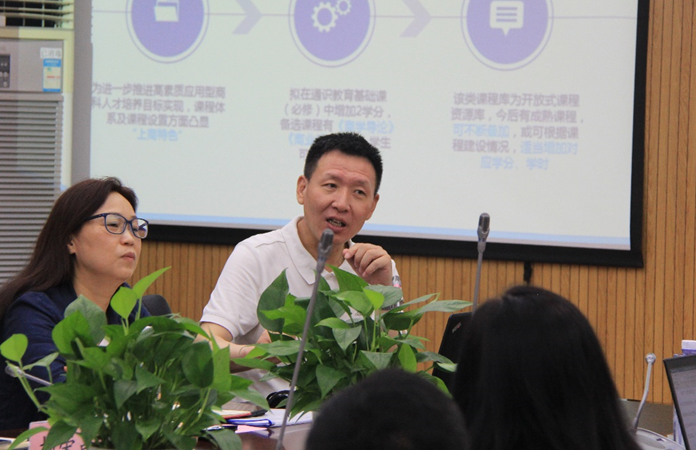 会上,教务处处长熊平安做专题汇报,结合我校从卓越商科人才培养到高素质应用型商科人才培养的发展历程和探索实践,从抓好学生的“两基一力”;打破5个“壁垒”,加强通识教育;课程标准与社会(岗位)需求对接;专业建设与行业发展对接;强化专业之间的交叉融合等方面进行了总结,并具体就打造商科平台课程、细化课程分级教学、规范课程归属、科学确定课程修读序列等内容,详细阐述了学校层面的总体设计和实施方案。