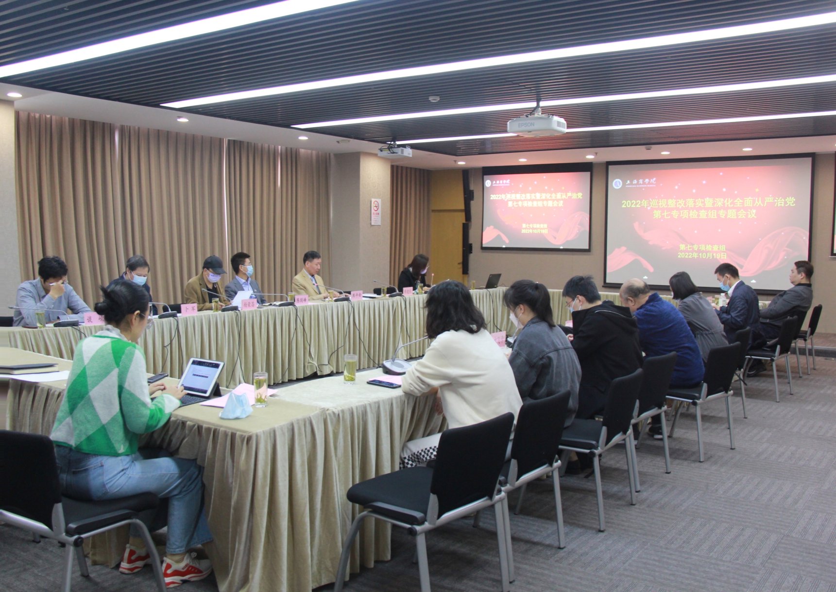 10月19日上午,我校召开2022年巡视整改落实暨深化全面从严治党第七专项检查组专题会议。根据学校专项检查工作任务要求,教务处、教学质量与评估中心、高等技术学院(继续教育学院)、高教研究所、图书馆、商务外语学院领导班子成员及师生代表参加本次会议,并就推动巡视整改落实暨深化全面从严治党专项检查工作自查情况进行汇报。副校长陈剑峰作为我校第七专项检查组组长听取各检查单位报告,并讲话。会议由第七专项检查组副组长熊平安主持。