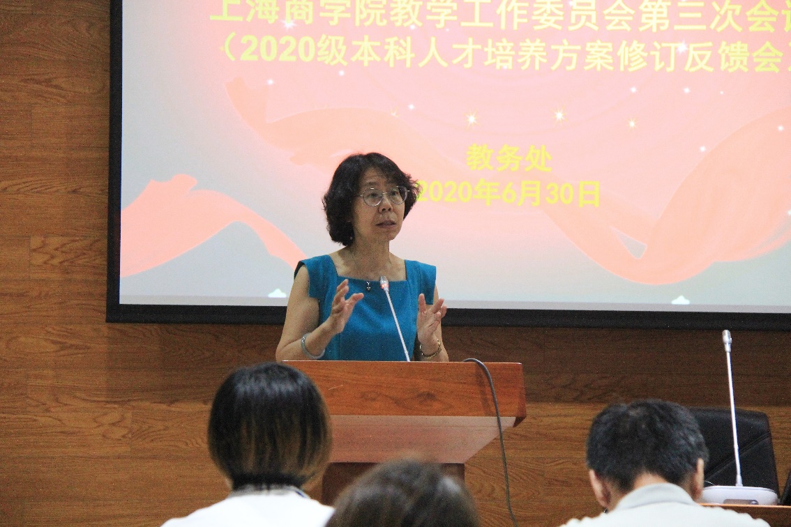 贺瑛副校长对本次人才培养方案修订反馈情况进行了点评,针对人才培养规格、学分设置、商科平台课程打造、课程分级教学、课程描述、创新创业、跨专业综合实验课开发等提出了具体意见和建议。