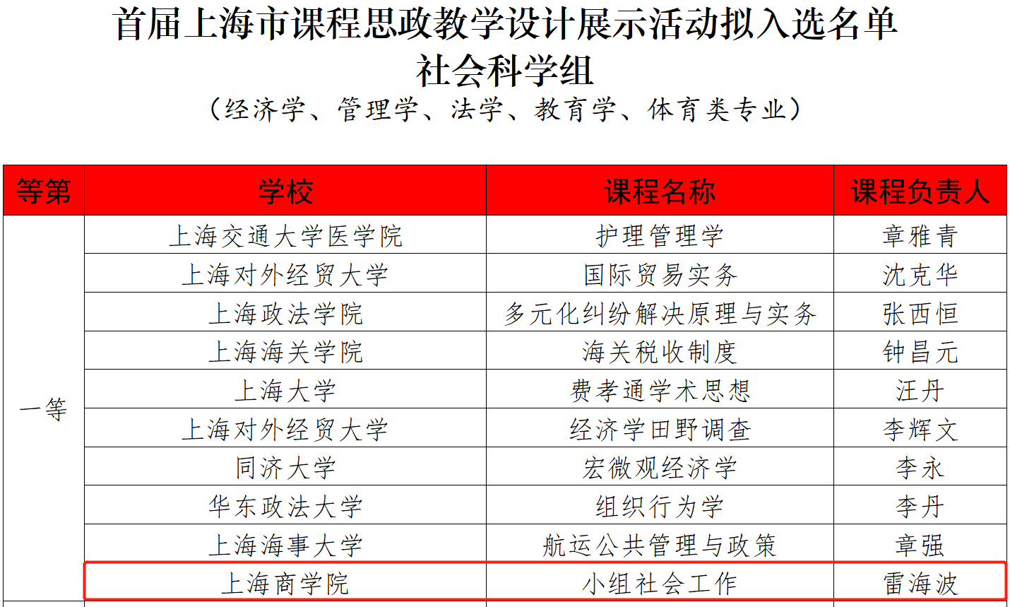 【一流本科进行时】我校教师雷海波所授课程《小组社会工作》入选首届上海市课程思政教学设计展示活动
