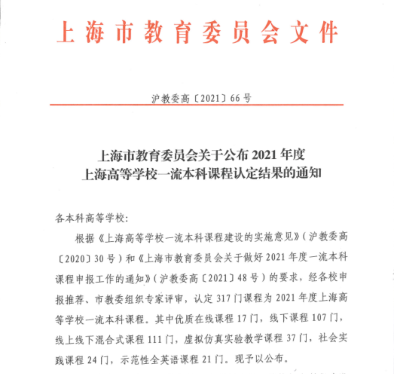 【一流本科进行时】喜讯!我校7门课程获批2021年度上海高等学校一流本科课程