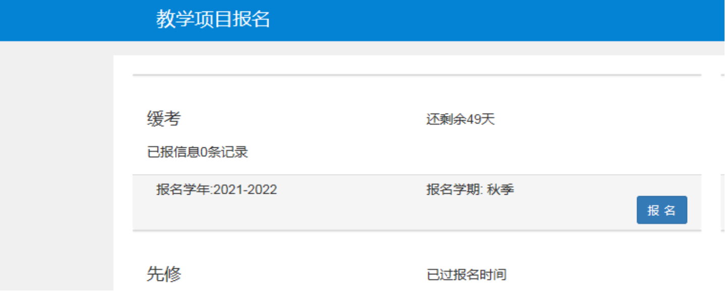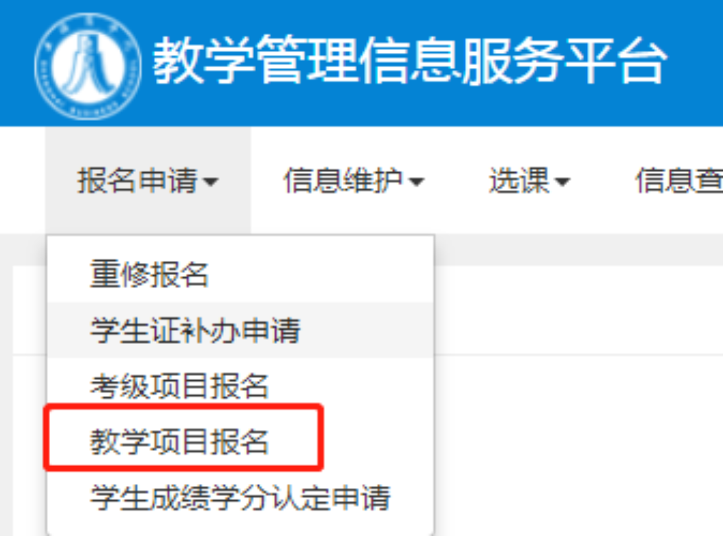 学生进入教务系统后,点击报名申请→教学项目报名(图1)